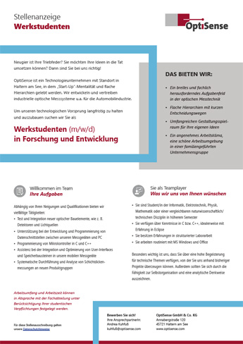 Wir geben unser Bestes, damit Sie Ihr Bestes geben können. Für sein Engagement als Arbeitgeber wurde OptiSense bereits mehrfach ausgezeichnet – unter anderem als „Arbeitgeber der Zukunft“ vom Deutschen Innovationsinstitut für Nachhaltigkeit und Digitalisierung (DIND) sowie mit dem „German Business Award 2023“ des internationalen Wirtschaftsmagazins EU Business News, u. a. für starke Innovationen, dauerhafte Spitzenleistungen sowie die hervorragende Marktposition in der Sensorbranche.